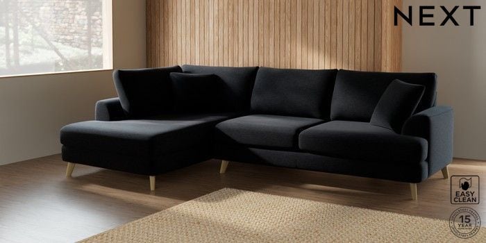 7.2.5 Buy Parker Large Corner Chaise - Left Hand Fine Chenille Easy Clean Black Low Retro Tapered - Light from the Laura Ashley online shop Click here to use our website with more accessibility support, for example screen readers