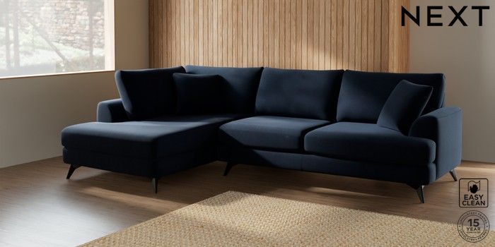 7.2.5 Buy Parker Large Corner Chaise - Left Hand Fine Chenille Easy Clean Dark Navy Blue High Metal - Black from the Laura Ashley online shop Click here to use our website with more accessibility support, for example screen readers