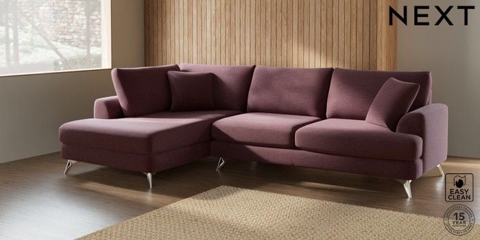 7.2.5 Buy Parker Large Corner Chaise - Left Hand Fine Chenille Easy Clean Mid Mulberry Purple High Metal - Chrome from the Laura Ashley online shop Click here to use our website with more accessibility support, for example screen readers