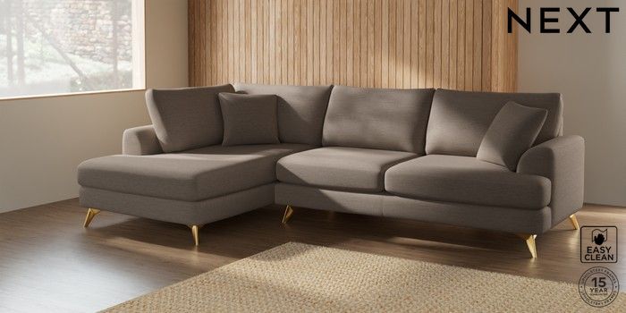 7.2.5 Buy Parker Large Corner Chaise - Left Hand Fine Chenille Easy Clean Mid Taupe Brown High Metal - Brass from the Laura Ashley online shop Click here to use our website with more accessibility support, for example screen readers