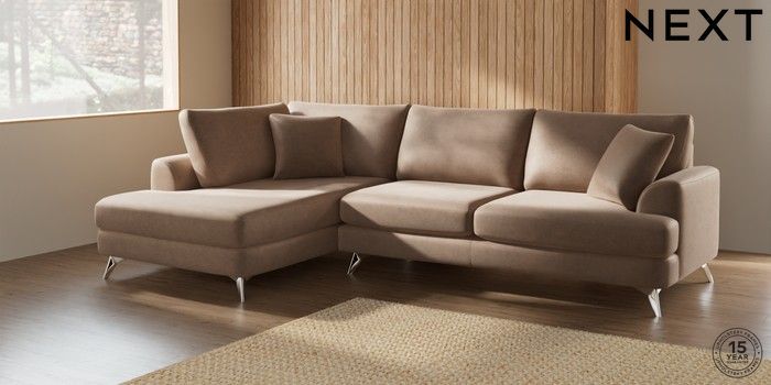 7.2.5 Buy Parker Large Corner Chaise - Left Hand Luxe Chenille Mid Natural High Metal - Chrome from the Laura Ashley online shop Click here to use our website with more accessibility support, for example screen readers