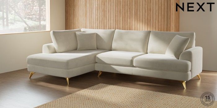 7.0.3 Buy Parker Large Corner Chaise - Left Hand Luxe Chenille Oyster High Metal - Brass from the Laura Ashley online shop Click here to use our website with more accessibility support, for example screen readers