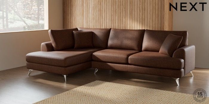 7.2.5 Buy Parker Large Corner Chaise - Left Hand Monza Faux Leather Easy Clean Chestnut Brown High Metal - Chrome from the Laura Ashley online shop Click here to use our website with more accessibility support, for example screen readers