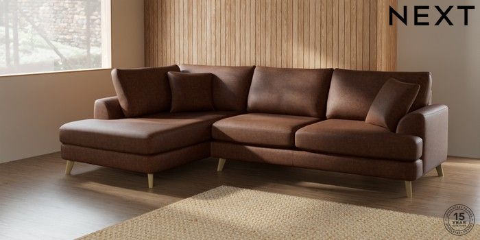 7.2.5 Buy Parker Large Corner Chaise - Left Hand Monza Faux Leather Easy Clean Chestnut Brown Low Retro Tapered - Light from the Laura Ashley online shop Click here to use our website with more accessibility support, for example screen readers