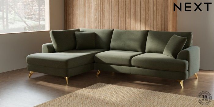 7.2.5 Buy Parker Large Corner Chaise - Left Hand Ripple Chenille Mid Moss Green High Metal - Brass from the Laura Ashley online shop Click here to use our website with more accessibility support, for example screen readers