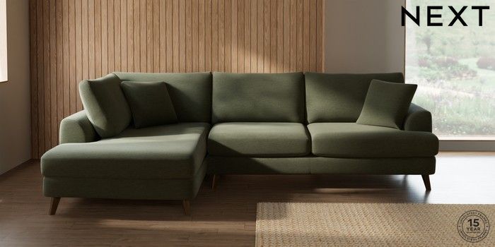 7.2.10 Buy Parker Large Corner Chaise - Left Hand Ripple Chenille Mid Moss Green Low Retro Tapered - Mid from the Laura Ashley online shop Click here to use our website with more accessibility support, for example screen readers