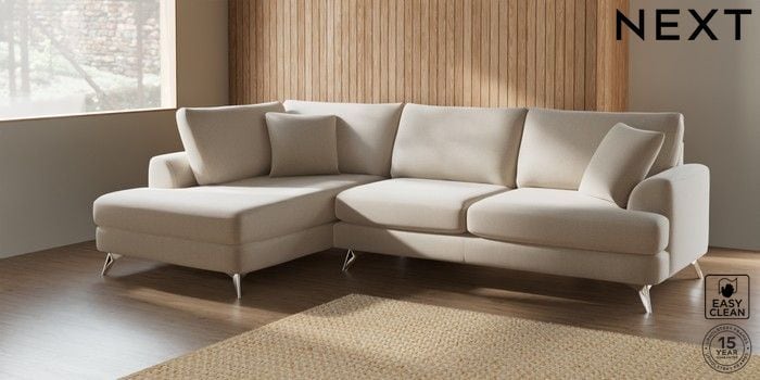 7.2.5 Buy Parker Large Corner Chaise - Left Hand Tweedy Blend Easy Clean Oyster High Metal - Chrome from the Laura Ashley online shop Click here to use our website with more accessibility support, for example screen readers