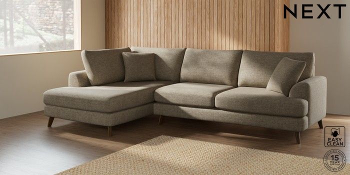 7.2.5 Buy Parker Large Corner Chaise - Left Hand Woven Chenille Easy Clean Mid Natural Low Retro Tapered - Mid from the Laura Ashley online shop Click here to use our website with more accessibility support, for example screen readers