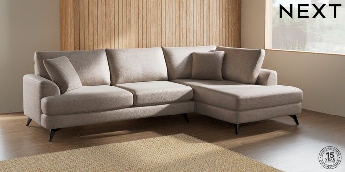 7.2.5 Buy Parker Large Corner Chaise - Right Hand Boucle Chenille Light Natural High Metal - Black from the Laura Ashley online shop Click here to use our website with more accessibility support, for example screen readers