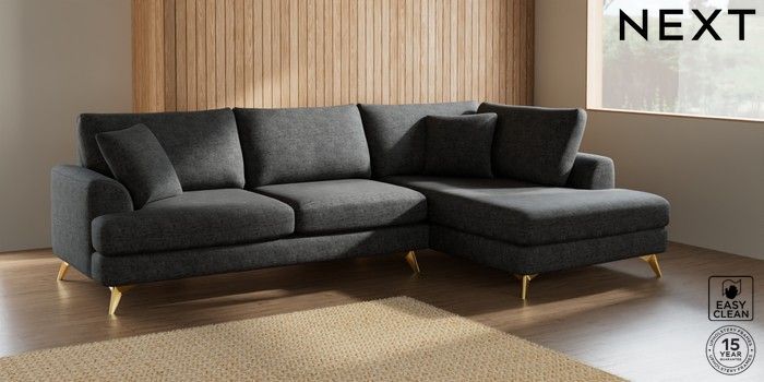 7.2.5 Buy Parker Large Corner Chaise - Right Hand Boucle Weave Easy Clean Charcoal Grey High Metal - Brass from the Laura Ashley online shop Click here to use our website with more accessibility support, for example screen readers