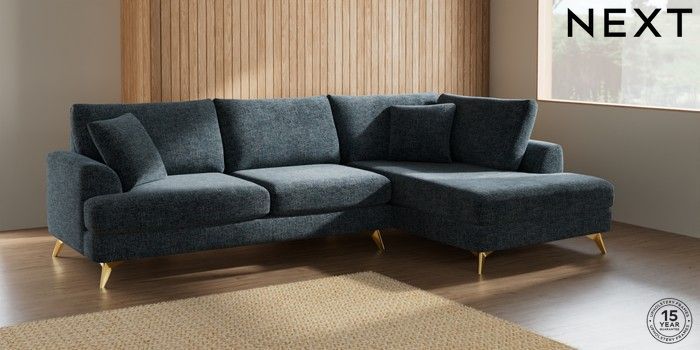 7.2.5 Buy Parker Large Corner Chaise - Right Hand Chunky Chenille Dark Navy Blue High Metal - Brass from the Laura Ashley online shop Click here to use our website with more accessibility support, for example screen readers