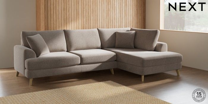 7.2.5 Buy Parker Large Corner Chaise - Right Hand Chunky Chenille Light Dove Low Retro Tapered - Light from the Laura Ashley online shop Click here to use our website with more accessibility support, for example screen readers