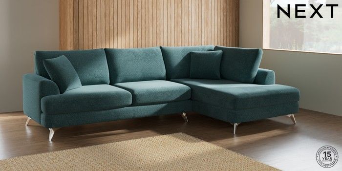 7.2.5 Buy Parker Large Corner Chaise - Right Hand Chunky Chenille Mid Teal Green High Metal - Chrome from the Laura Ashley online shop Click here to use our website with more accessibility support, for example screen readers