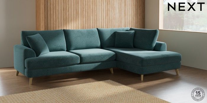 7.2.5 Buy Parker Large Corner Chaise - Right Hand Chunky Chenille Mid Teal Green Low Retro Tapered - Light from the Laura Ashley online shop Click here to use our website with more accessibility support, for example screen readers