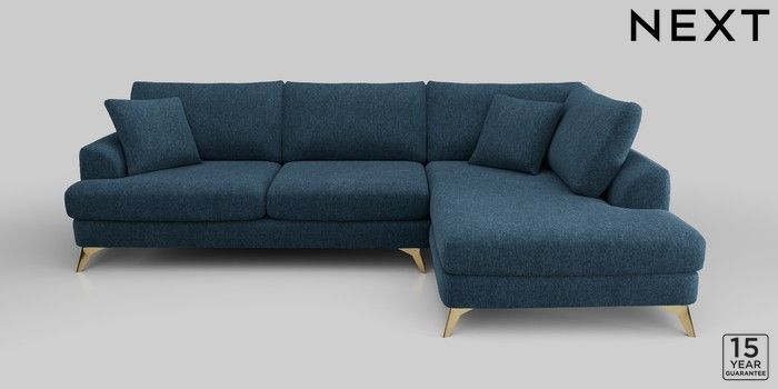 6.12.13 Buy Parker Large Corner Chaise - Right Hand Cotswold Chenille Dark Blue High Metal - Brass from the Laura Ashley online shop Click here to use our website with more accessibility support, for example screen readers