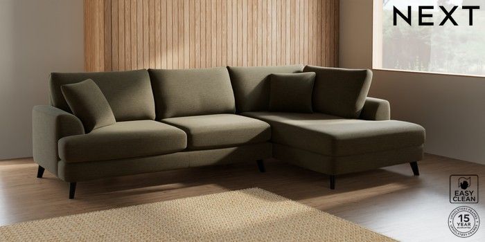 7.2.5 Buy Parker Large Corner Chaise - Right Hand Fine Chenille Easy Clean Dark Moss Green Low Retro Tapered - Dark from the Laura Ashley online shop Click here to use our website with more accessibility support, for example screen readers