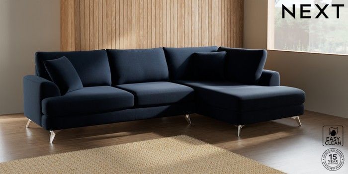 7.2.5 Buy Parker Large Corner Chaise - Right Hand Fine Chenille Easy Clean Dark Navy Blue High Metal - Chrome from the Laura Ashley online shop Click here to use our website with more accessibility support, for example screen readers