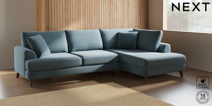 7.2.5 Buy Parker Large Corner Chaise - Right Hand Fine Chenille Easy Clean Mid Blue Low Retro Tapered - Mid from the Laura Ashley online shop Click here to use our website with more accessibility support, for example screen readers