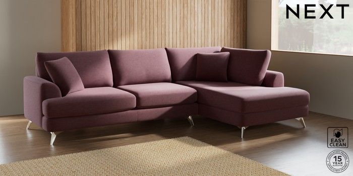 7.2.5 Buy Parker Large Corner Chaise - Right Hand Fine Chenille Easy Clean Mid Mulberry Purple High Metal - Chrome from the Laura Ashley online shop Click here to use our website with more accessibility support, for example screen readers