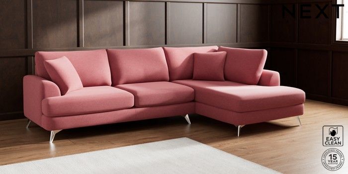 7.2.5 Buy Parker Large Corner Chaise - Right Hand Fine Chenille Easy Clean Mid Pink High Metal - Chrome from the Laura Ashley online shop Click here to use our website with more accessibility support, for example screen readers