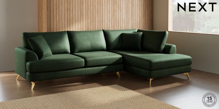 7.2.5 Buy Parker Large Corner Chaise - Right Hand Luxe Chenille Dark Green High Metal - Brass from the Laura Ashley online shop Click here to use our website with more accessibility support, for example screen readers