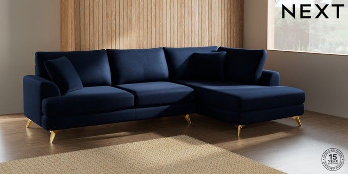 7.2.4 Buy Parker Large Corner Chaise - Right Hand Luxe Chenille Navy Blue High Metal - Brass from the Laura Ashley online shop Click here to use our website with more accessibility support, for example screen readers