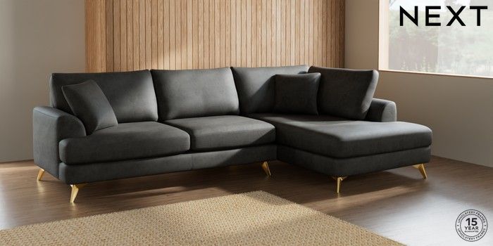 7.2.5 Buy Parker Large Corner Chaise - Right Hand Monza Faux Leather Easy Clean Dark Grey High Metal - Brass from the Laura Ashley online shop Click here to use our website with more accessibility support, for example screen readers
