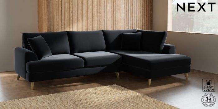 7.2.6 Buy Parker Large Corner Chaise - Right Hand Plush Velvet Easy Clean Charcoal Grey Low Retro Tapered - Light from the Laura Ashley online shop Click here to use our website with more accessibility support, for example screen readers