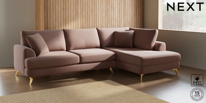 7.2.4 Buy Parker Large Corner Chaise - Right Hand Plush Velvet Easy Clean Mid Natural High Metal - Brass from the Laura Ashley online shop Click here to use our website with more accessibility support, for example screen readers