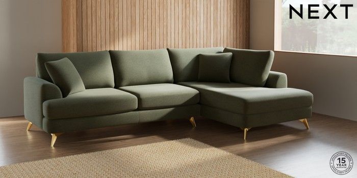7.2.5 Buy Parker Large Corner Chaise - Right Hand Ripple Chenille Mid Moss Green High Metal - Brass from the Laura Ashley online shop Click here to use our website with more accessibility support, for example screen readers