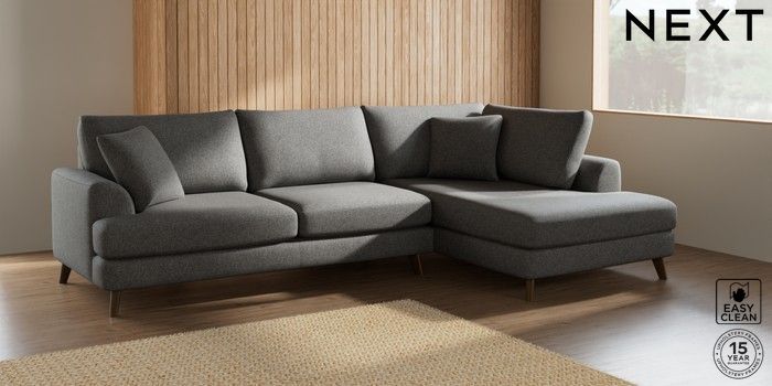 7.2.5 Buy Parker Large Corner Chaise - Right Hand Tweedy Blend Easy Clean Dark Grey Low Retro Tapered - Mid from the Laura Ashley online shop Click here to use our website with more accessibility support, for example screen readers