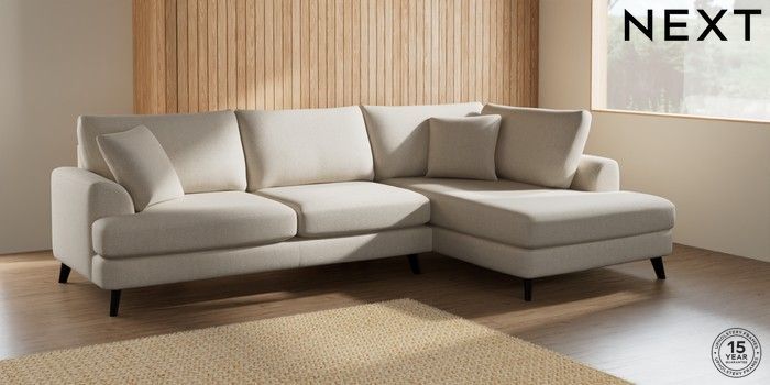 7.2.5 Buy Parker Large Corner Chaise - Right Hand Tweedy Chenille Oyster Low Retro Tapered - Dark from the Laura Ashley online shop Click here to use our website with more accessibility support, for example screen readers