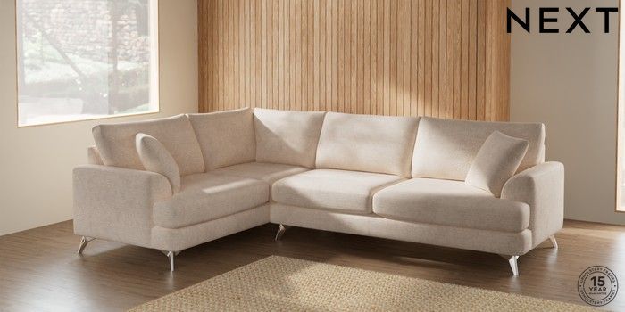 7.2.5 Buy Parker Large Corner Sofa - Left Hand Boucle Chenille Oyster High Metal - Chrome from the Laura Ashley online shop Click here to use our website with more accessibility support, for example screen readers