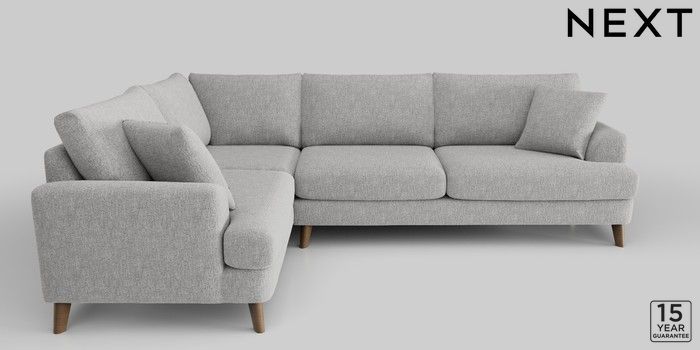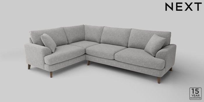 6.12.1 Buy Parker Large Corner Sofa - Left Hand Chunky Chenille Light Grey Low Retro Tapered - Mid from the Laura Ashley online shop Click here to use our website with more accessibility support, for example screen readers