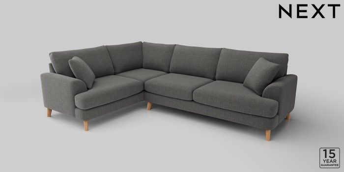 6.12.1 Buy Parker Large Corner Sofa - Left Hand Chunky Texture Dark Grey Low Retro Tapered - Light from the Laura Ashley online shop Click here to use our website with more accessibility support, for example screen readers