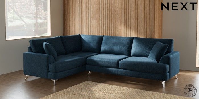 7.2.5 Buy Parker Large Corner Sofa - Left Hand Cotswold Chenille Dark Blue High Metal - Chrome from the Laura Ashley online shop Click here to use our website with more accessibility support, for example screen readers
