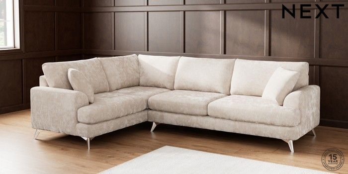 7.2.5 Buy Parker Large Corner Sofa - Left Hand Distressed Velour Mid Natural High Metal - Chrome from the Laura Ashley online shop Click here to use our website with more accessibility support, for example screen readers