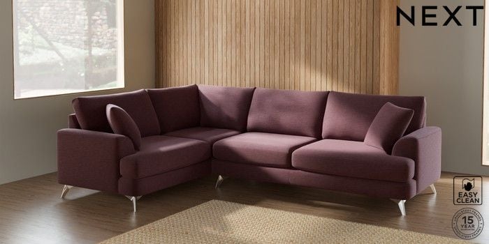 7.2.5 Buy Parker Large Corner Sofa - Left Hand Fine Chenille Easy Clean Mid Mulberry Purple High Metal - Chrome from the Laura Ashley online shop Click here to use our website with more accessibility support, for example screen readers