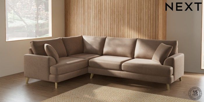 7.2.5 Buy Parker Large Corner Sofa - Left Hand Luxe Chenille Mid Natural Low Retro Tapered - Light from the Laura Ashley online shop Click here to use our website with more accessibility support, for example screen readers