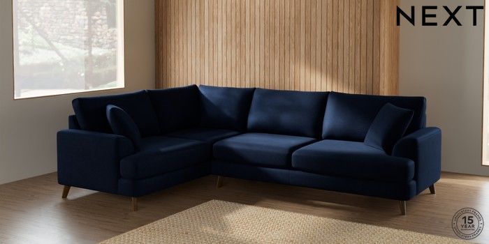 7.0.3 Buy Parker Large Corner Sofa - Left Hand Luxe Chenille Navy Blue Low Retro Tapered - Mid from the Laura Ashley online shop Click here to use our website with more accessibility support, for example screen readers