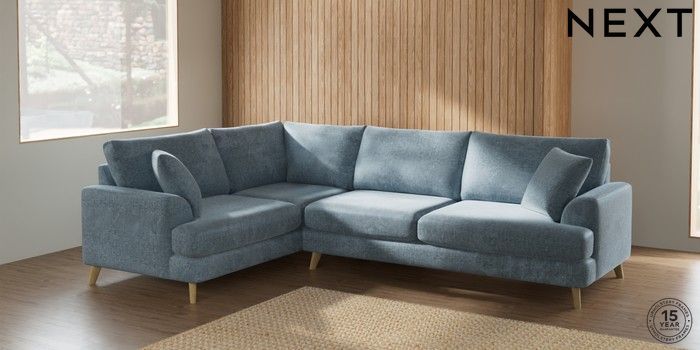 7.2.6 Buy Parker Large Corner Sofa - Left Hand Plush Chenille Light Blue Low Retro Tapered - Light from the Laura Ashley online shop Click here to use our website with more accessibility support, for example screen readers