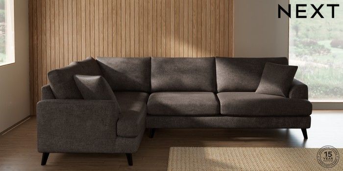 7.2.10 Buy Parker Large Corner Sofa - Left Hand Plush Chenille Mink Brown Low Retro Tapered - Dark from the Laura Ashley online shop Click here to use our website with more accessibility support, for example screen readers
