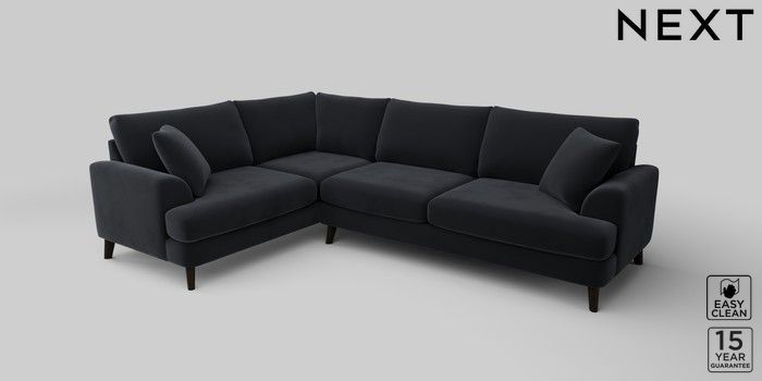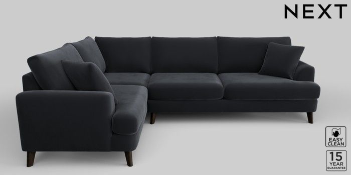 6.12.1 Buy Parker Large Corner Sofa - Left Hand Plush Velvet Easy Clean Charcoal Grey Low Retro Tapered - Dark from the Laura Ashley online shop Click here to use our website with more accessibility support, for example screen readers