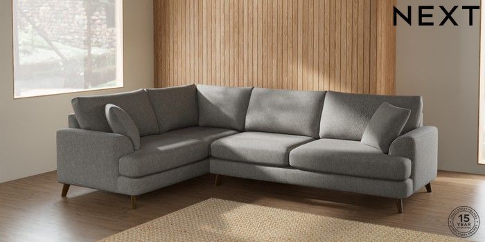 7.2.5 Buy Parker Large Corner Sofa - Left Hand Tweedy Chenille Mid Grey Low Retro Tapered - Mid from the Laura Ashley online shop Click here to use our website with more accessibility support, for example screen readers