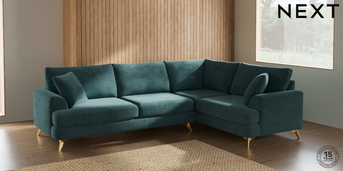 7.2.5 Buy Parker Large Corner Sofa - Right Hand Chunky Chenille Mid Teal Green High Metal - Brass from the Laura Ashley online shop Click here to use our website with more accessibility support, for example screen readers