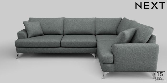 6.12.1 Buy Parker Large Corner Sofa - Right Hand Chunky Weave Mid Grey High Metal - Chrome from the Laura Ashley online shop Click here to use our website with more accessibility support, for example screen readers