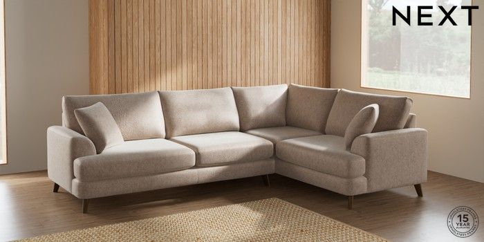 7.2.5 Buy Parker Large Corner Sofa - Right Hand Cotswold Chenille Light Natural Low Retro Tapered - Mid from the Laura Ashley online shop Click here to use our website with more accessibility support, for example screen readers