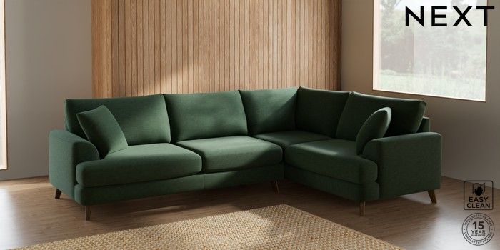 7.2.5 Buy Parker Large Corner Sofa - Right Hand Fine Chenille Easy Clean Mid Khaki Green Low Retro Tapered - Mid from the Laura Ashley online shop Click here to use our website with more accessibility support, for example screen readers