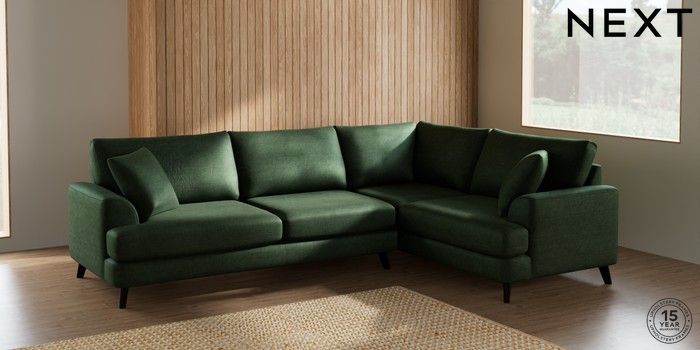 7.2.5 Buy Parker Large Corner Sofa - Right Hand Luxe Chenille Dark Green Low Retro Tapered - Dark from the Laura Ashley online shop Click here to use our website with more accessibility support, for example screen readers