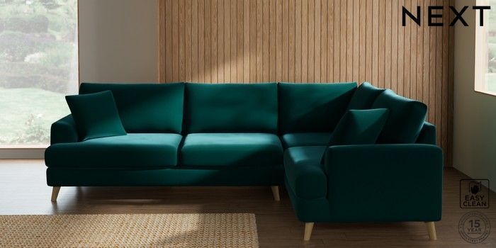 7.2.10 Buy Parker Large Corner Sofa - Right Hand Plush Velvet Easy Clean Juniper Green Low Retro Tapered - Light from the Laura Ashley online shop Click here to use our website with more accessibility support, for example screen readers